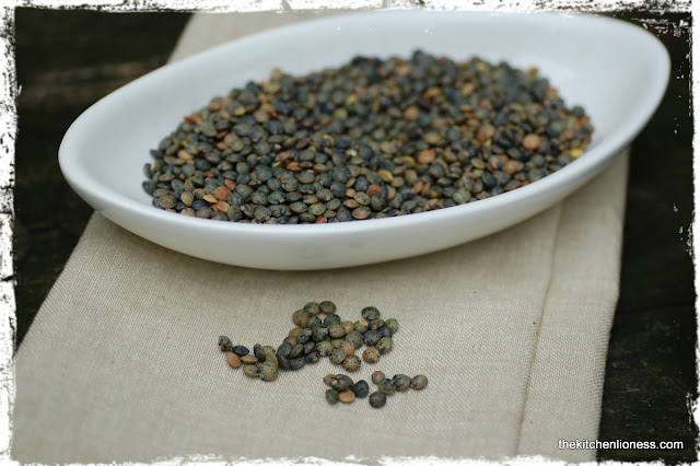 The De Puy lentils are so pretty! I didn't have time to hunt some down, so regular brown lentils had to do. I did follow Dorie's recipe and will definitely make them again.