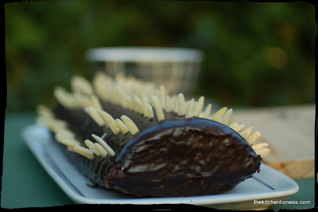 The recipe that I am featuring today is for a so-called “Rehrücken” (“Saddle of Venison Cake”), a chocolate almond cake with chocolate icing. “Rehrücken", a word that in German means "saddle of venison," is used to designate this cake with a long tradition behind it. The cake is like a saddle of venison only in its shape, and for many generations, molds made in the shape of a stylized saddle of venison have been manufactured especially for making this fanciful cake. These special molds are fluted and have deep indentations down the middle but if you do not own a "Rehrücken" baking pan, you should note that this cake can also be made in a deep loaf pan.