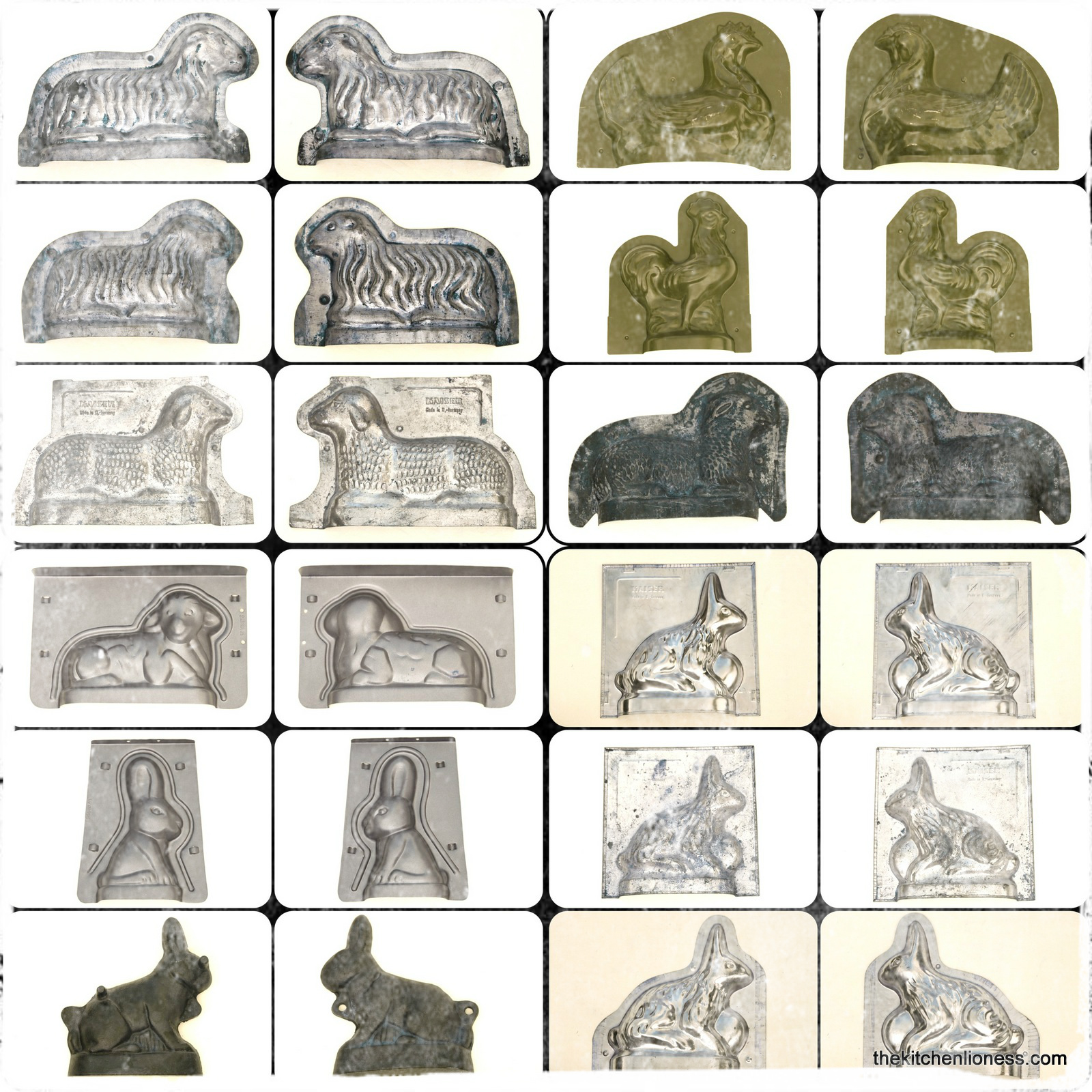Following are pictures of some of my most treasured Easter baking pans, most of them are vintage but some of them are new and were modeled after the originals. I started collecting these baking pans many years ago.
