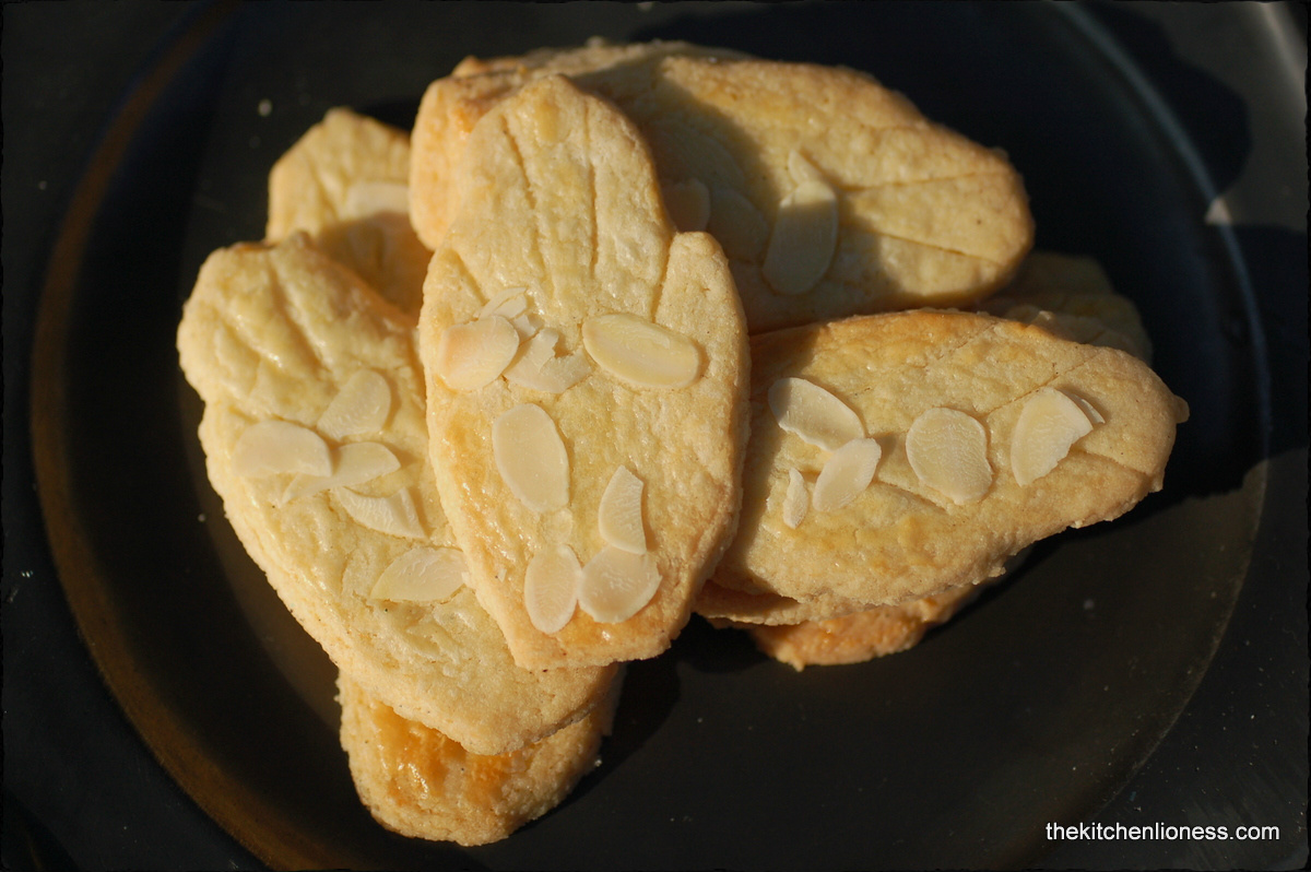 Following is a my personal version of these famous cookies - they were a bit time consuming (because that paper template of mine kept getting stuck to the buttery dough) to make but tasted wonderful and almost looked like the real ones.