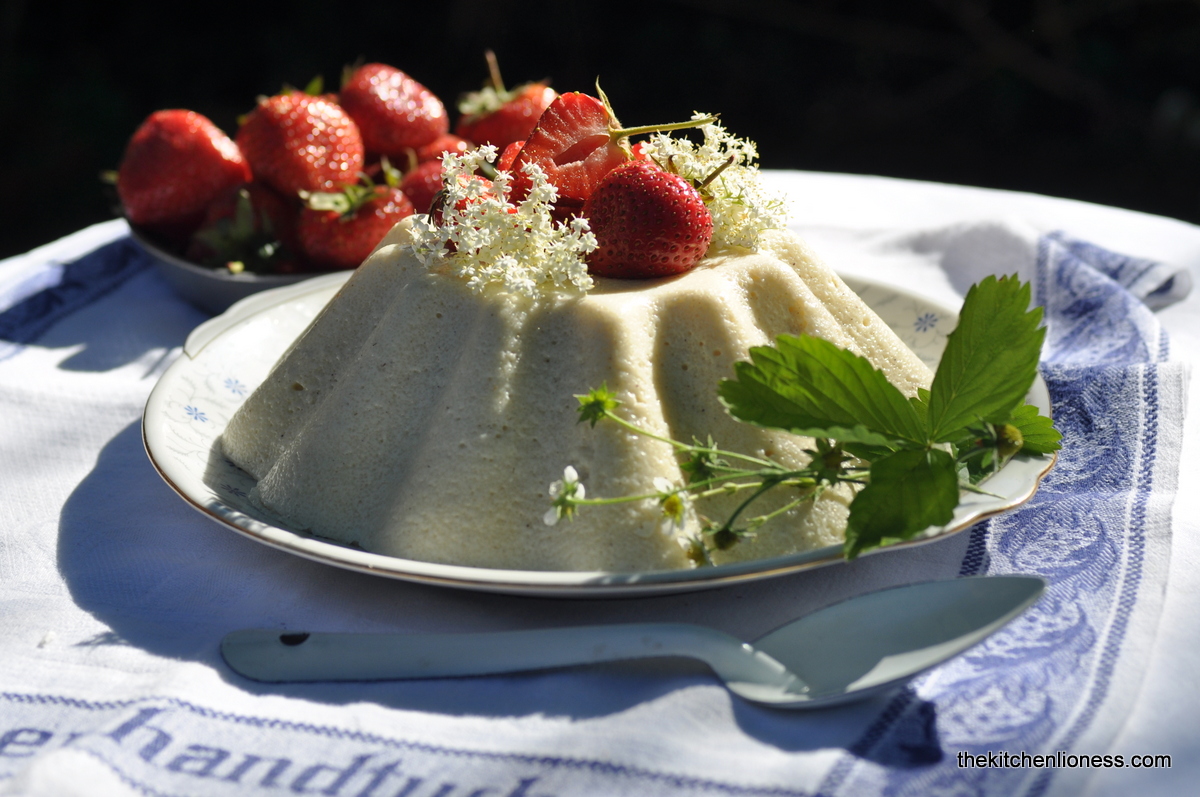 This is a new recipe for me. It looks so delicious and the strawberries and elder flowers add a nice touch.
