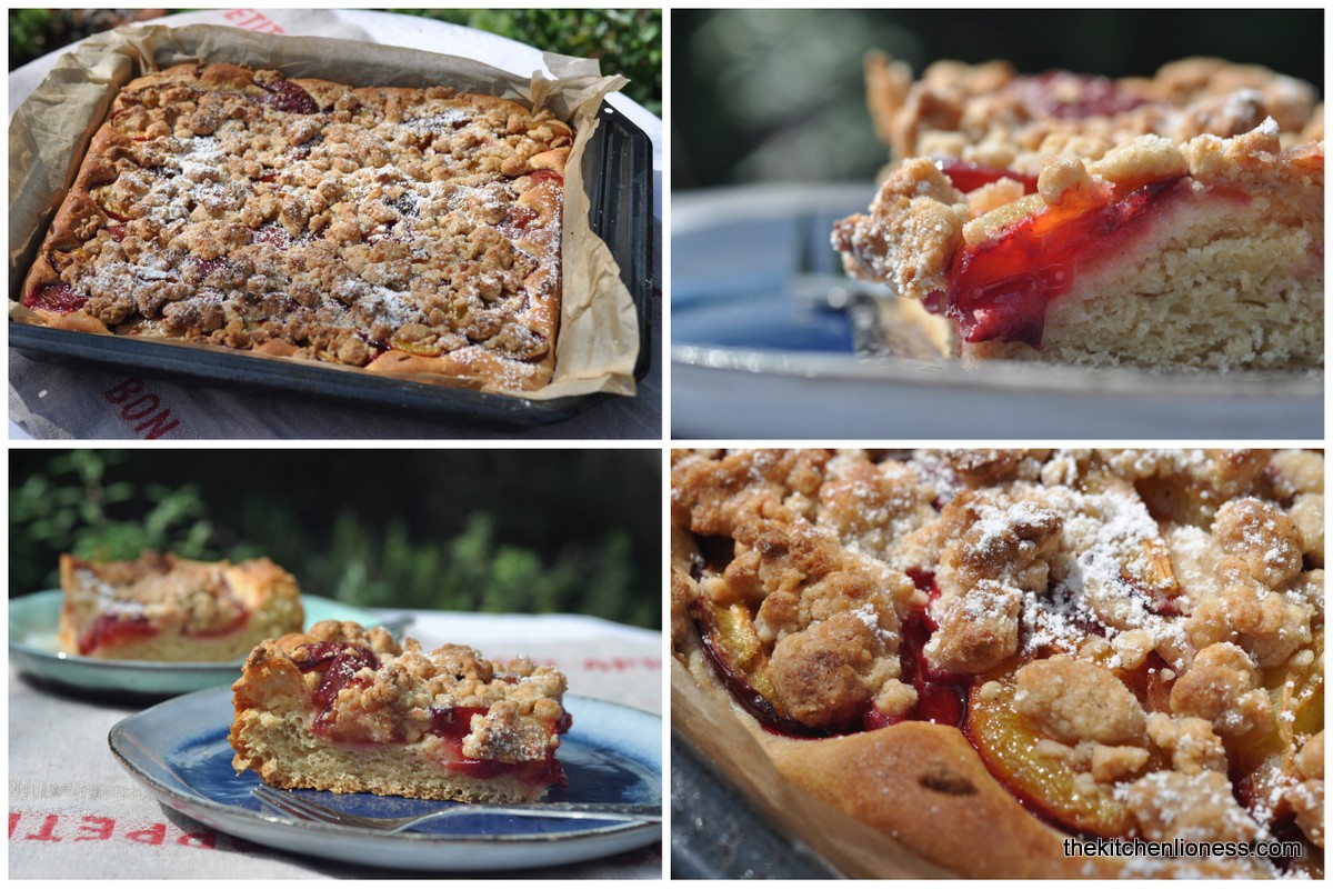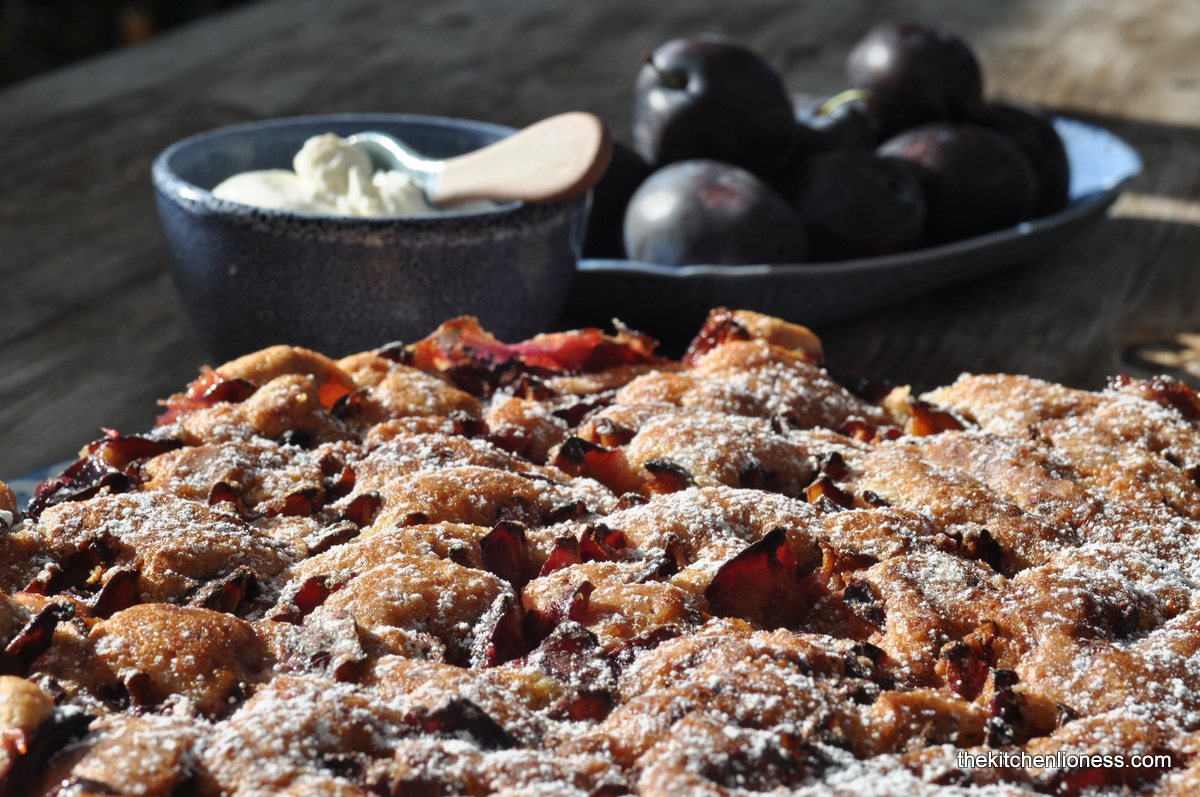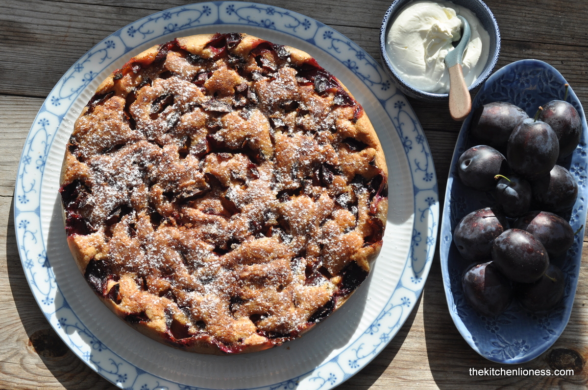 There are countless recipes out there for plum cake. Whether plum cake as a sheet pan cake, as a tart, with or without yeast, a buttery shortcrust pastry base, or one made with Quark (fresh cheese) and oil, with streusel or nut topping, these are all incredibly popular around here but what is non-negotiable, is a generous helping of Schlagsahne (whipped cream) on top.