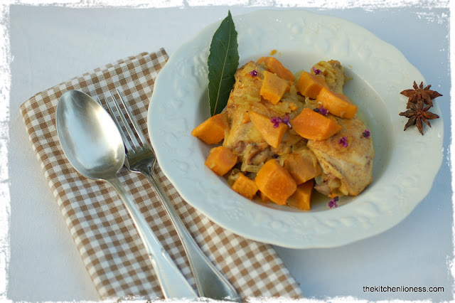 Today´s recipe for the French Fridays with Dorie Group is Chicken Tagine with Sweet Potatoes. A Tagine is a Berber dish from North Africa, that is named after the special earthenware pot in which it is cooked.