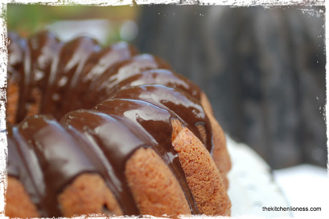 3. Spread warm glaze over top of cake, letting it drizzle down the sides.