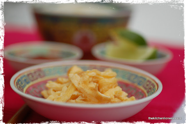 1. Sara, thanks so much for the lovely comment! I saw a cook the other day prepare an omelette in a wok and was fascinated by the idea, so I felt that using it for garnish would be tasty and help me practice my "wok onmelette skills" a bit. It is so simple, I cannot believe that I had never tried it before and it was very well received too.
