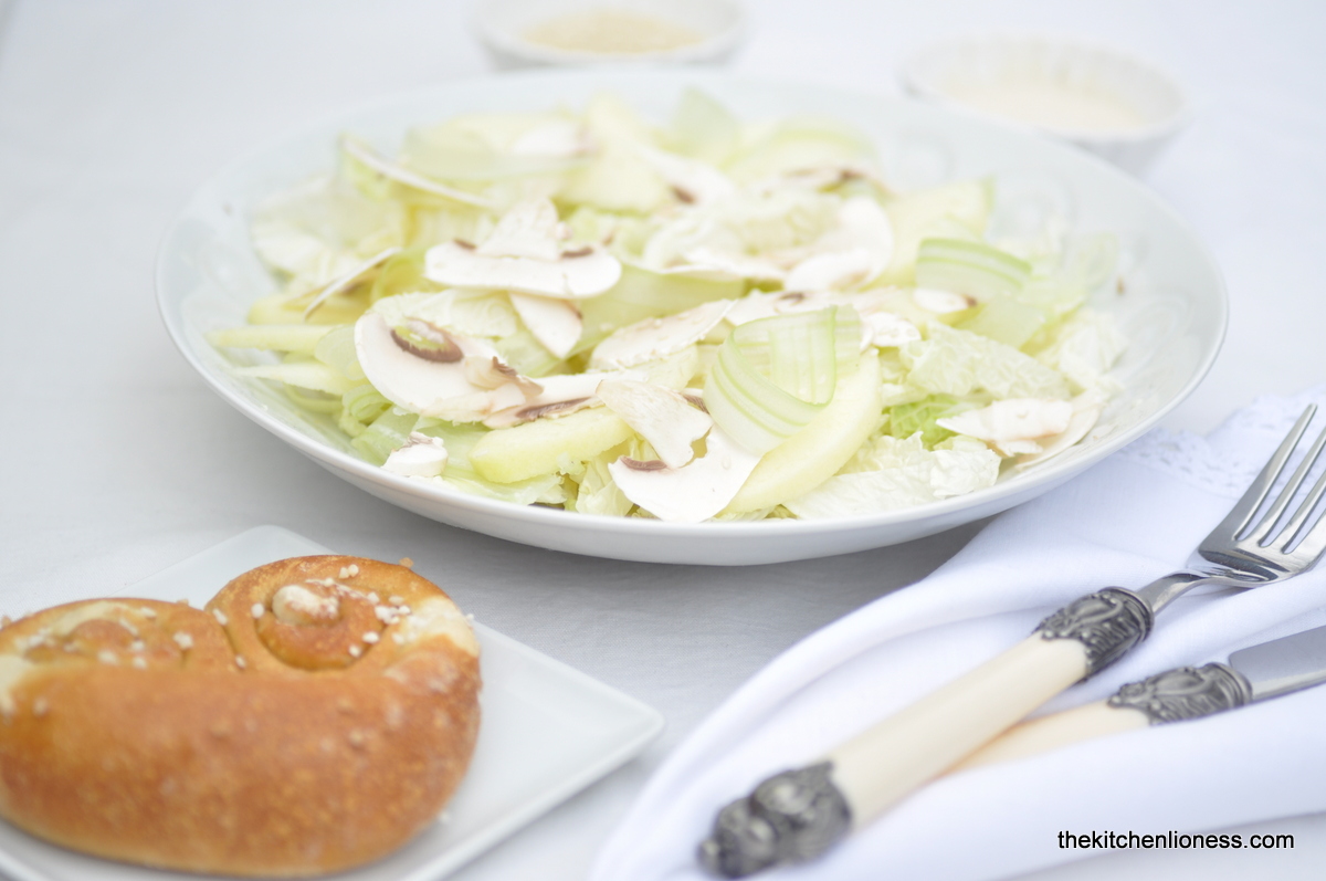 If you happen to own Dorie Greenspan´s book “Around my French Table”, you will find the recipe for “Hélène´s All-White Salad” on pages 108-109.