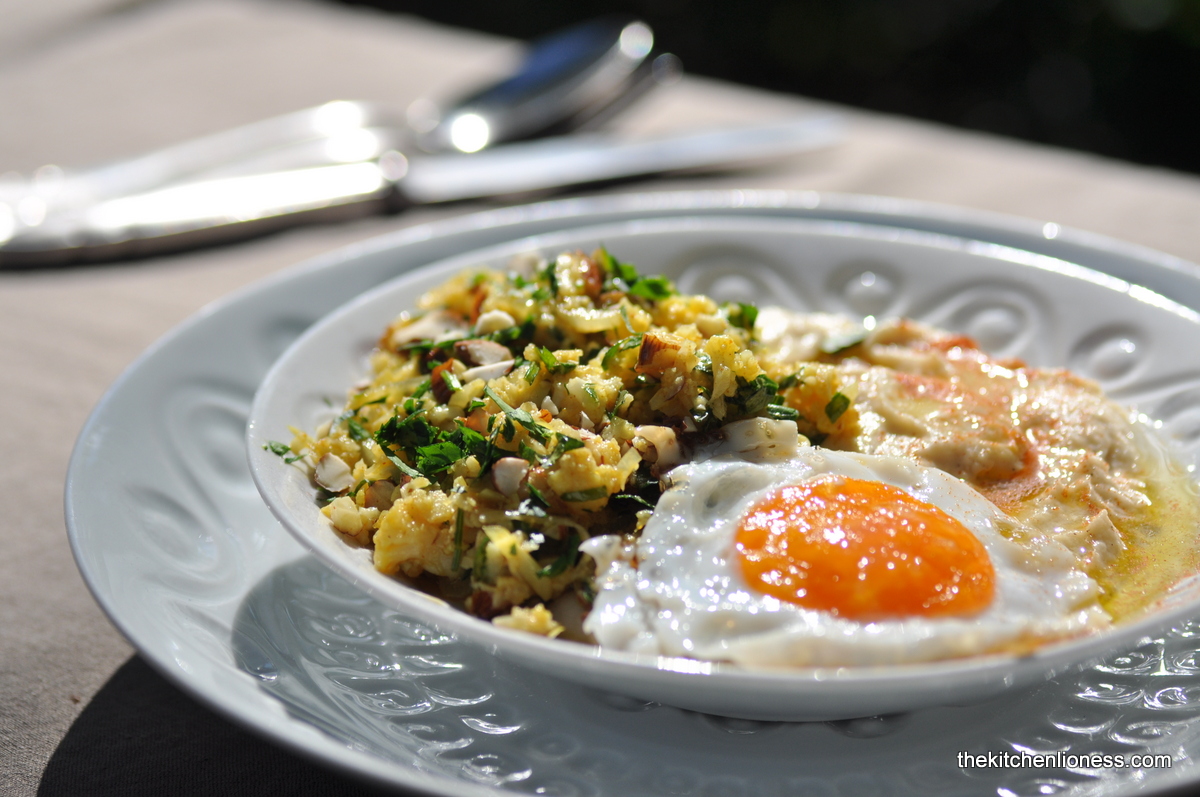 My third NOPI recipe the Celeriac Puree with spiced Cauliflower and fried Egg was simply amazing. The puree works well on its own as an alternative to hummus, but, combined with the other elements, makes a substantial starter or even a meal in itself if served with warm, crusty bread or white pita.