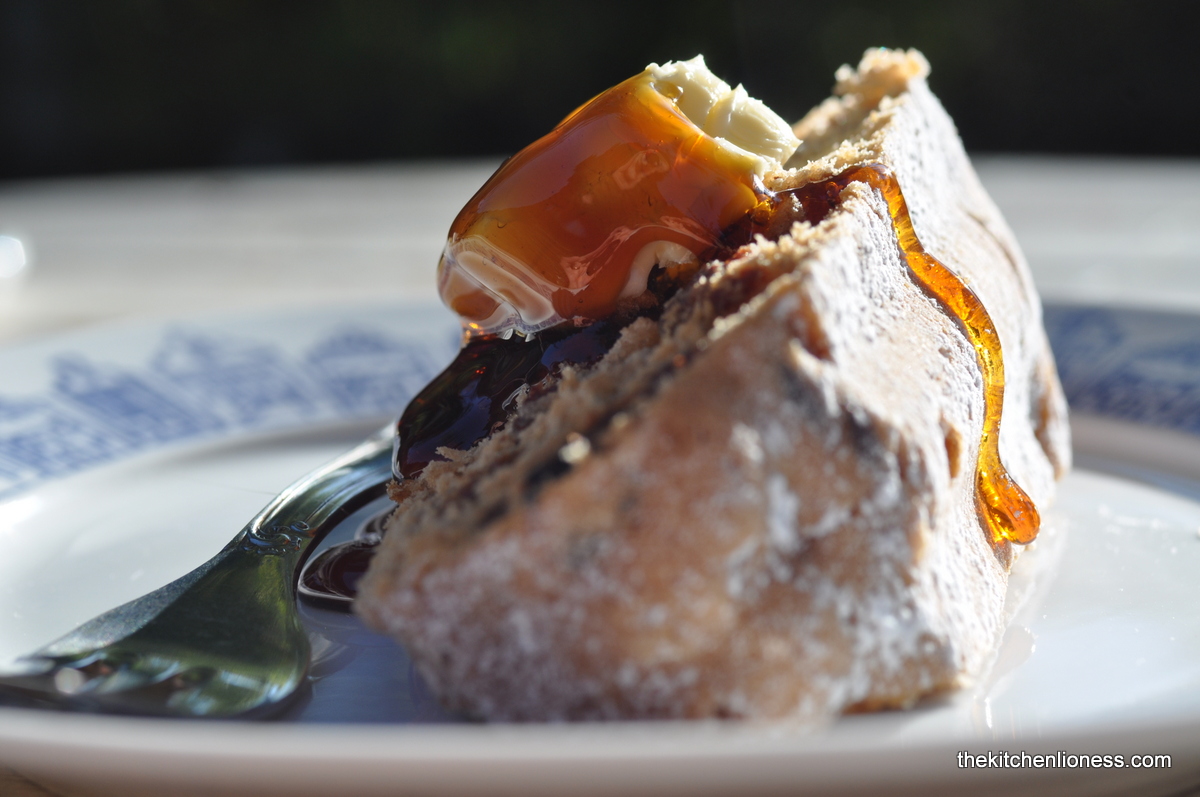 The combination of peeled and grilled aubergine slices, local runny honey, lemon, chili and fresh thyme is very nice and full of contrasts that pleased my palate - next time I would love to serve this dish as part of an Asian inspired spread.