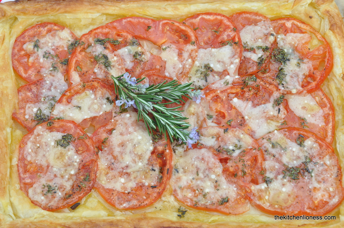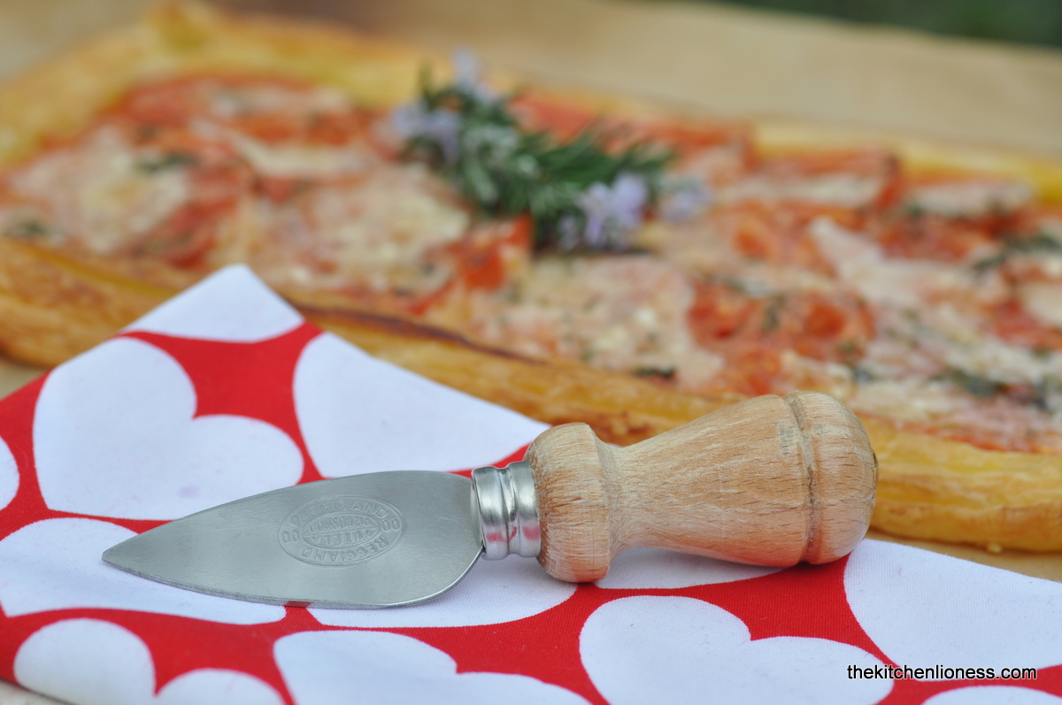 The main recipe has become a family favorite, my go to recipe for those days when I am looking or a quick, no fuss, savory fare with easy to find ingredients that can be assembled in a flash. So, this recipe is another example of how handy store-bought, good-quality puff pastry can be. Add some thinly sliced tomatoes (even if they are a bit out-of-season these days), some thinly sliced garlic, pepper, salt, a bit of good olive oil and bake. Then add some chopped rosemary and grated some lovely, sharp Pecorino Romano – I opted for shavings of Pecorino instead of grating it. For the looks, of course. Failing Pecorino you can also use Parmigiano Reggiano to great effect here. It tastes just as wonderful in this recipe.
