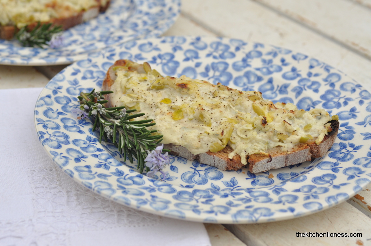 The third recipe in February was the Apple and blue vinny toastie (page 204) from the chapter of "Bready Things". With grated tart eating apples, Gorgonzola dolce, a bit of mayonnaise, some salt and pepper this is certainly a different kind of topping for some toasted country bread.