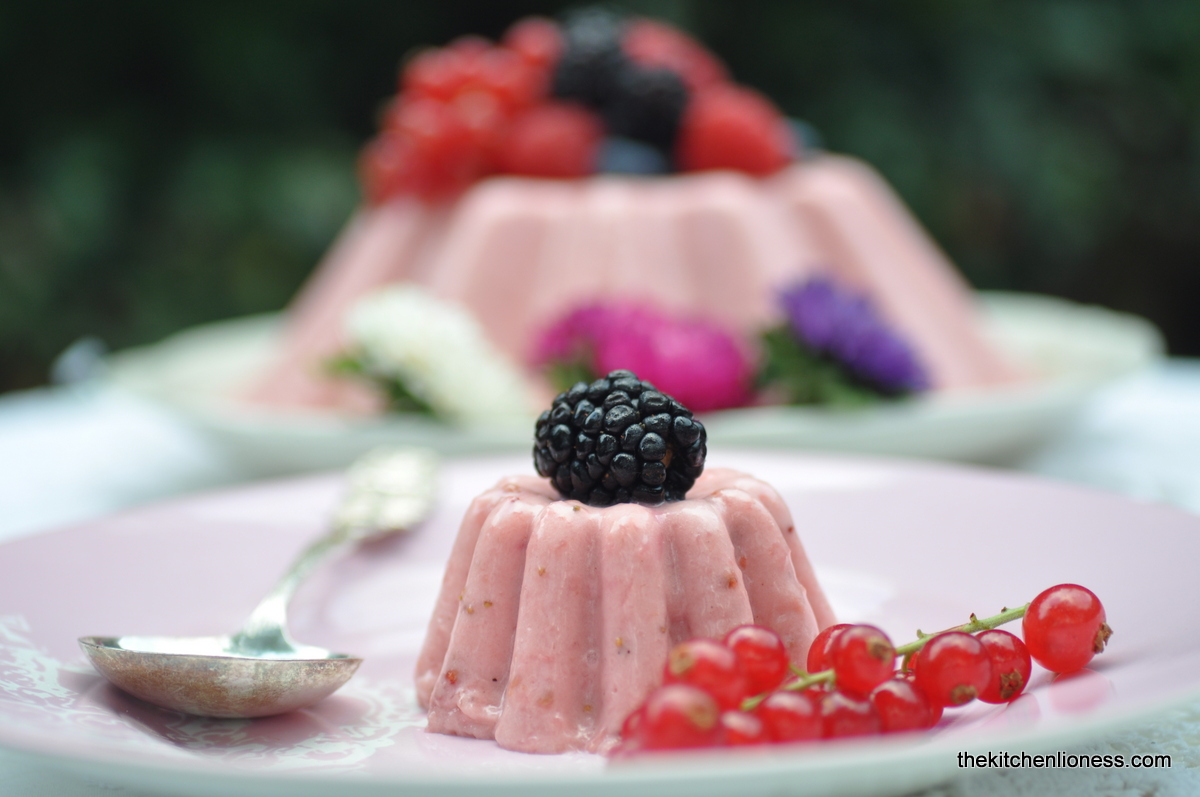 My grand-parents lived in Northern Germany and my beloved grand-mother used to make a lot of different kinds of puddings and custards, my favorite one was her caramel pudding - the one that she served with an ample supply of freshly whipped cream. Although I cannot remember having enjoyed a summery dessert like the Blushing Maiden with berries, buttermilk and cream in her lovely kitchen, I am quite sure that she would have loved this dessert quite a bit - especially if served with the fresh red currants, strawberries and blackberries from her big garden, as well as a homemade vanilla custard sauce.