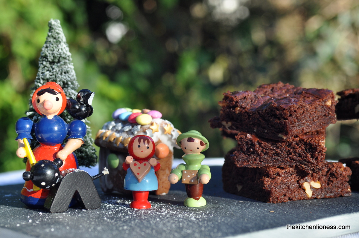 Since it is the season not only for showing off all your baked goods, but all your festive decorations and ornaments as well, I decided to bake teeny tiny gingerbread houses and let the kids decorate them while I rummaged through countless boxes searching for my treasured handcrafted wooden set of Hänsel and Gretel and the witch. As I happily retrieved my heirloom figurines from all that tissue paper that they were wrapped in, the kids had put their final touches to the houses and they loved how it all looked - the cake, the gingerbread houses, the powdered sugar snow and the little fairy tale figurines – not a bad start to the festive season.
